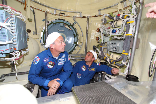 Jeff Williams and Max Suraev inspect Mini-Research Module 2.