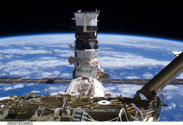 Бортовая фотография "Прогресса М-МИМ2", который через две недели лишится своей половинки. :)