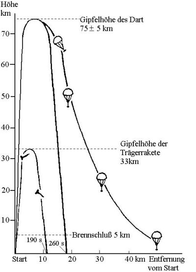 Flugbahn von Rakete und Dart