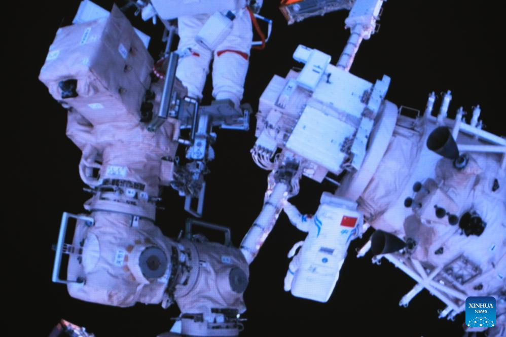 Е Гуанфу, Ли Цун и Ли Гуансу работали около восьми с половиной часов, выполнив различные задачи, включая установку устройств защиты от космического мусора. Им помогали роботизированный манипулятор космической станции и команда научно-технических специалистов на Земле.