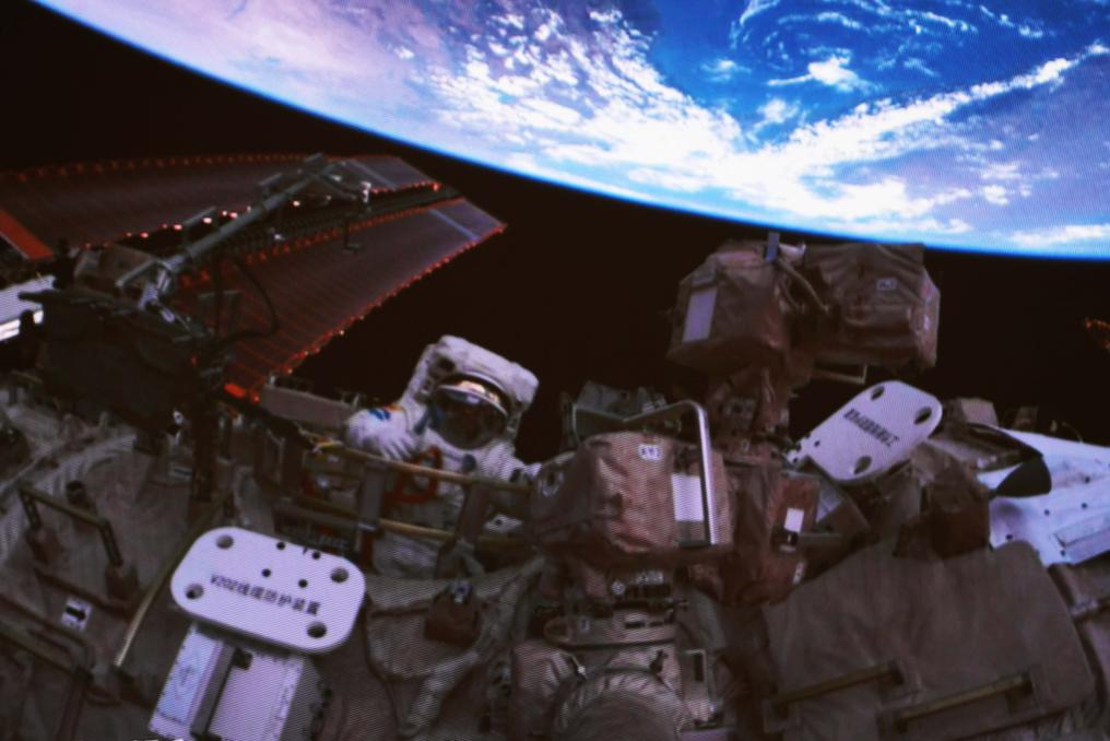 The Shenzhou-18 crew on board China's orbiting space station completed their first spacewalk at 18:58 Beijing time on Tuesday, according to the China Manned Space Agency (CMSA).