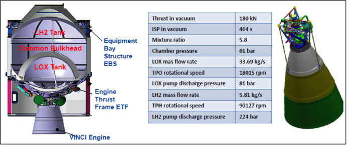 - A cryogenic upper stage (LOX/LH2) propelled by a Vinci engine, based on the A5ME upper stage, with limited adaptations.