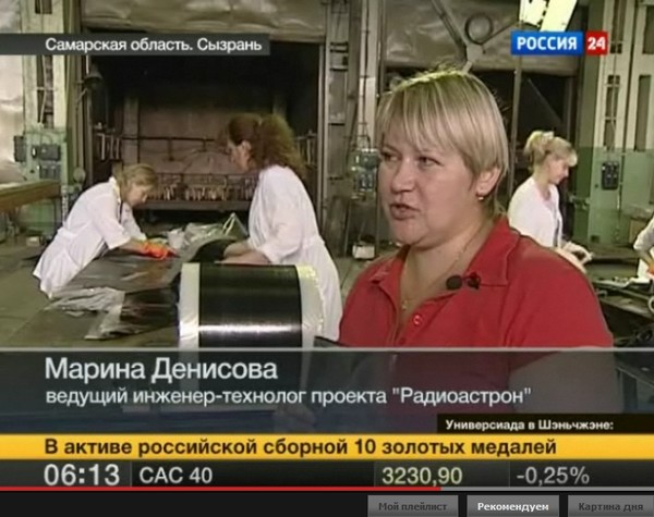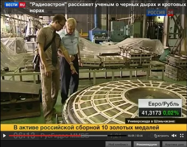 Минут 40 назад по РТР  в передаче "Утро России" был занятный репортаж об изготовлении лепестков Радиоастрона. Правда, в сети что-то упоминание не могу найти. Впрочем, может он появиться только после трансляции в Москве..