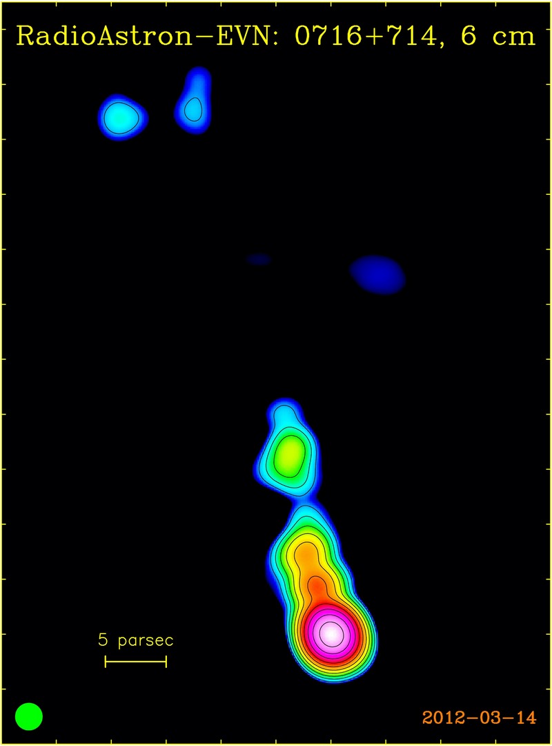 ЦитироватьДля многих из этих объектов оценки яркостной температуры дают значения около 10 триллионов Кельвинов (10 в 13 степени), что превысило ожидаемые астрономами параметры, это крайне важно для исследования физики излучения в ядрах галактик. Такие открытия могут в будущем заставить ученых пересмотреть свои представления о физике Вселенной.