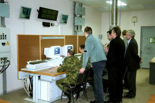 8 ноября 2004, первый пуск РН 14A14 №1Л. Подземный командный пункт. То самое "компьютерное управление" стартом. На табло: время вверху - время старта, внизу - осталось до старта. (фото ® Mr. Scorpion)