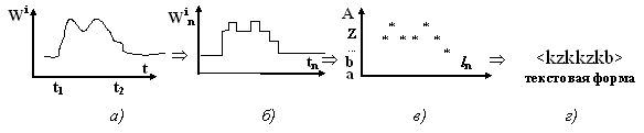 Аналог (а) оцифровывается (б), квантуется по времени (в) и превращается в поток СЛОВ (г)