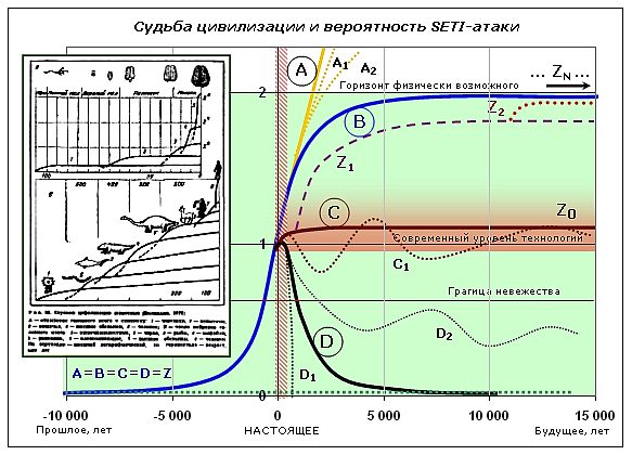 Я в свое время стряпал для господина Турчина в споре о SETI-атаке (но так и не использовал) вот эту картинку-прогноз разных путей развития земной цивилизации.