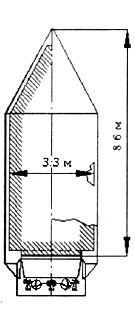 ЦитироватьУниверсальный отсек системы управления снабжен четырьмя двигателями 11Д458 для обеспечения выведения полезной нагрузки на высокие круговые орбиты. Компоненты топлива для этих двигателей — несимметричный диметилгидразин и азотный тетраксид. Тяга четырех двигателей в пустоте 160 кг, удельная тяга в пустоте 252 сек. Запас топлива в отсеке 450 кг, сухая масса отсека 760 кг.