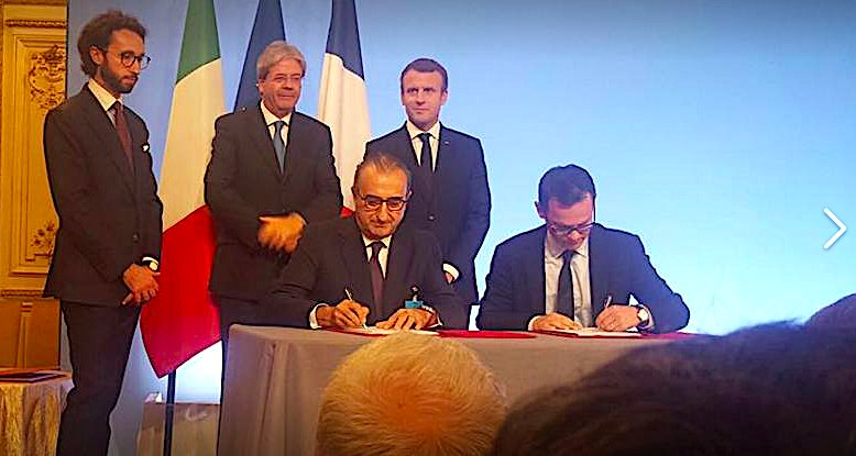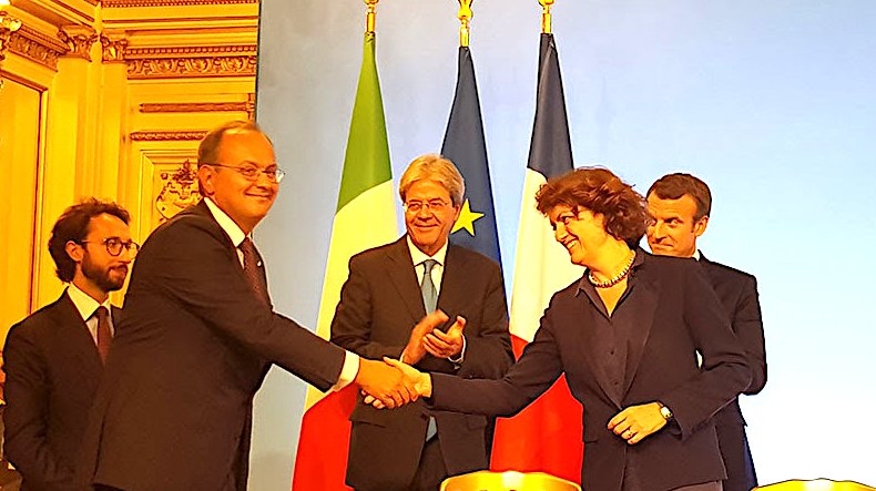 The signing ceremony was attended by French President Emmanuel Macron and Paolo Gentiloni, the President of the Council of Ministers of the Italian Republic, at the Prefecture du Rhône, in Lyon, France, on the occasion of the 34th French-Italian summit.