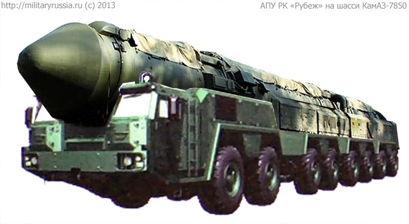 Предположительный внешний вид АПУ ракетного комплекса "Рубеж" на шасси КамАЗ-7850 (14.06.2013 г., http://militaryrussia.ru).