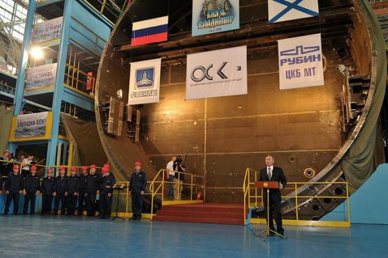 Напомним, атомный подводный крейсер был заложен 30 июля 2012 года в присутствии Президента РФ Владимира Путина. «Князь Владимир» спроектирован ОАО «ЦКБ МТ «Рубин» (Санкт-Петербург) и относится к новому поколению атомных стратегических ракетоносцев, вооруженных баллистическими ракетами «Булава».