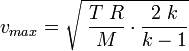 При подстановке в формулу (4) получается теоретический предел скорости истечения в пустоте, определяемый внутренней энергией газа:
