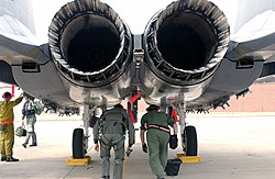 Проблема оптимизации степени расширения сопла очень актуальна и при разработке авиационных реактивных двигателей, поскольку самолёт предназначен для полётов в широком диапазоне высот, а от удельного импульса его двигателей в сильной мере зависит экономичность и, следовательно, дальность полёта. В современных турбореактивных двигателях применяются регулируемые сопла Лаваля. Такие сопла состоят из продольных пластин, имеющих возможность перемещения друг относительно друга, со специальным механизмом с гидравлическим или пневматическим приводом, позволяющим в полёте изменять площадь выходного и/или критического сечений, и, таким образом, добиваться оптимальной степени расширения сопла при полёте на любой высоте. Регулирование площади проходных сечений выполняется, как правило, автоматически специальной системой управления. Этот же механизм позволяет по команде пилота изменять в некоторых пределах и направление реактивной струи, а следовательно, направление вектора тяги, что существенно повышает маневренность самолёта.