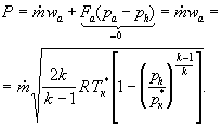 Здесь  — скорость истечения газа из сопла, определяемая по формуле (4);  — площадь среза сопла;  — давление газа на срезе сопла;  — давление окружающей среды;  — секундный массовый расход газа через сопло.