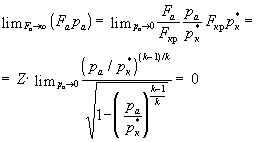 Равенство нулю второго слагаемого в уравнении для тяги (5.8) не очевидно для случая и соответствующего предельного значения , так как в этом случае имеем неопределенность типа произведения . Равенство нулю этого произведения следует из преобразований, использующих подстановку