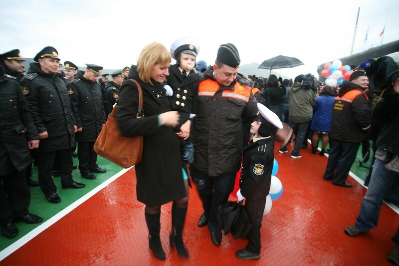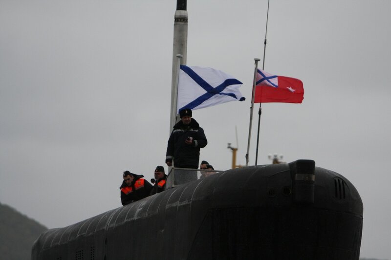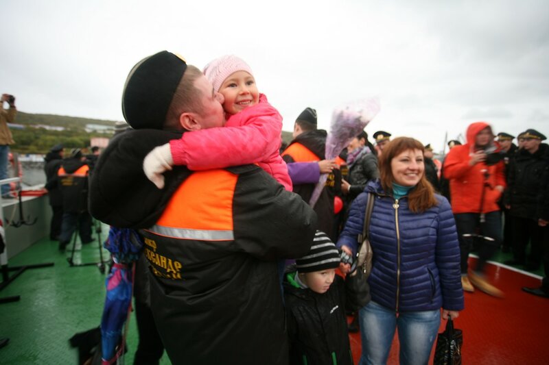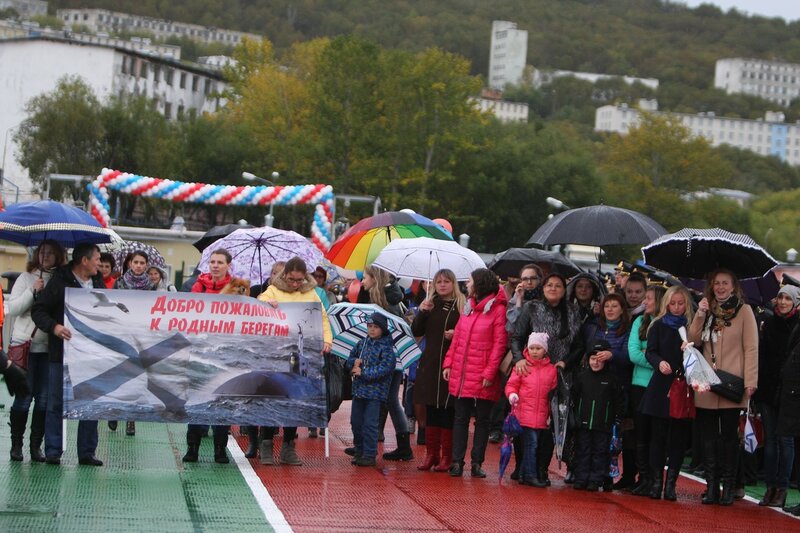 Субмарину на пирсе встретил главнокомандующий Военно-Морским Флотом (ВМФ) России адмирал Виктор Чирков и командующий Тихоокеанским флотом адмирал Сергей Авакянц. Они принял доклад от командира АПЛ капитана 1 ранга Василия Танковида о завершении арктического межфлотского перехода с Северного на Тихоокеанский флот и поздравил подводников с прибытием к месту постоянного базирования после успешно выполненной задачи дальнего плавания в северных широтах протяженностью 4,5 тыс. морских миль.