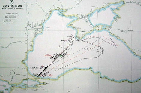 Американцы прошли терводы Болгарии, затем терводы Румынии. Но там румынских кораблей не было (командование румынского флота уже тогда игнорировало все наши указания и предложения). Далее американские корабли отвернули на восток, перешли в район 40-45 миль юго-юго-восточнее Севастополя и начали там какие-то непонятные маневры. Скорее всего, они осуществляли смену или закладку на наши связные кабельные трассы спецаппаратуры съема информации. Крутились американские корабли в этом районе двое с лишним суток. Потом перешли и маневрировали непосредственно в прилегающей к Севастополю морской зоне вне тервод.