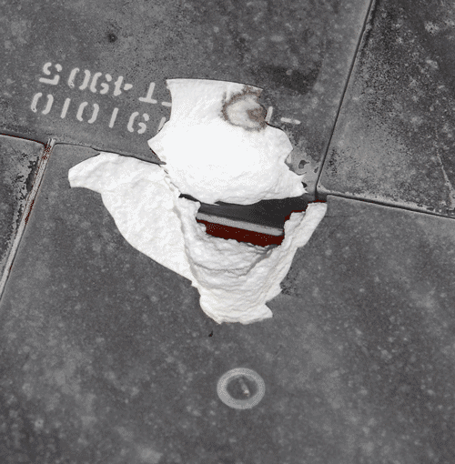 Конфигурация каверны сложная, каверна в каверне, с повреждением как прилежащих плиток, так и материала под ними. Предыдущих наработок по данному типу повреждений у NASA не оказалось. Был сделан запрос в NASA Ames Research Center, на компьютерное моделирование обтекания каверны. В соответствии с требованиям NASA, анализ должен быть проведен в течение 24 часов. Для анализа был применен суперкомпьютер Columbia в Ames, состоящий из 10,000 процессоров типа Intel Itanium-2. Следует отметить, что этот компьютер выделен для решения неотложных задач, возникающих во время полета Шаттла, и инструкция запрещает любые изменения конфигурации или модификацию ПО на все время полета.