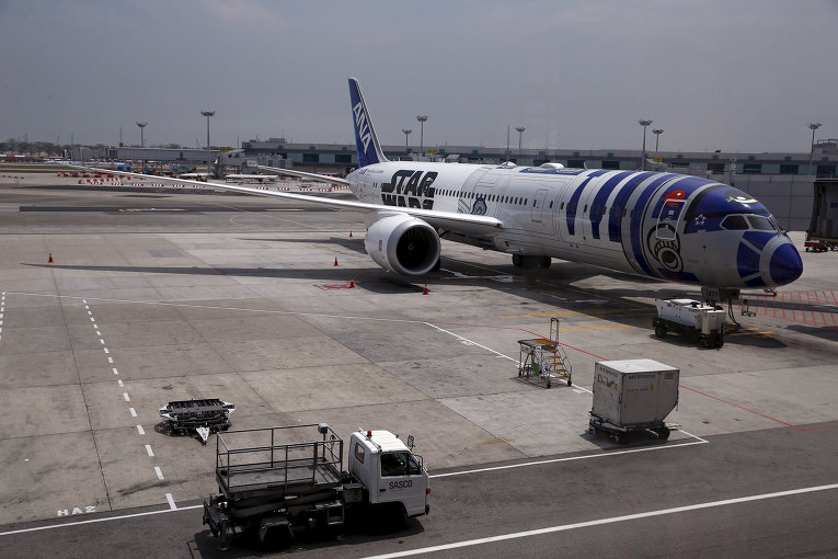 Специально к дате выхода седьмого эпизода "Звездных войн" японская авиакомпания All Nippon Airways оформила один из своих самолетов стиле культовой саги.