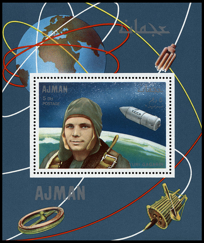 Я давно отслеживаю эту серию Аджмана-Манамы, потому что на полях марочных листов и полях люкс-блоков изображены фантастические космические аппараты. И после долгих поисков я нашёл, откуда эти аппараты.