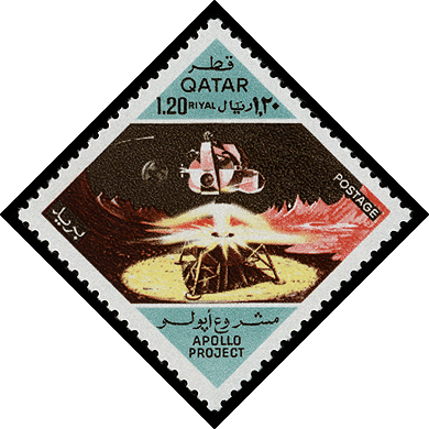 А вот одни из первых, если не первые, марки, посвящённые проекту "Аполлон". Что-то я не припомню такой "ушастой" взлётной ступени. Парагвай, 1964 год: