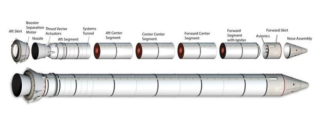 Я думаю про сегментированные ускорители, где варианты без средних секций используются на БРСД и верхних ступенях МБР и РН, а с средними - для первых ступеней МБР и РН. Ещё раз смотрим на SRM: