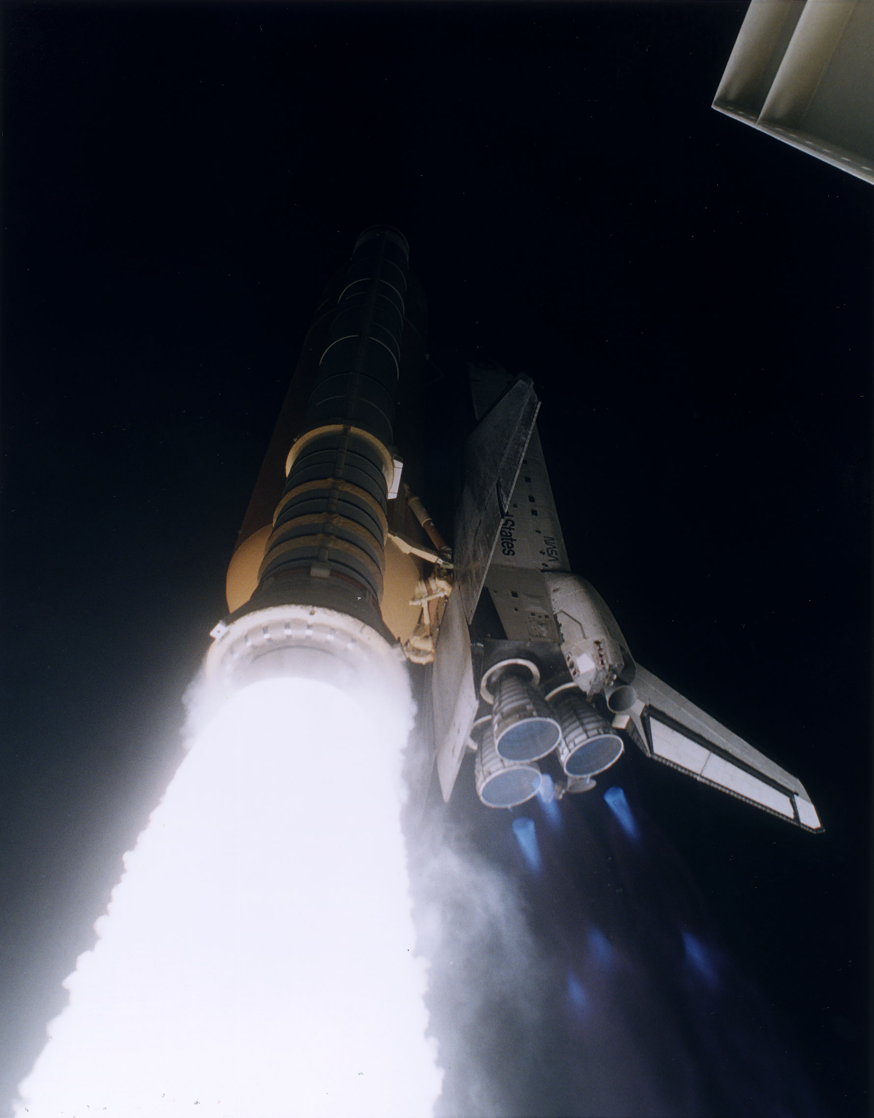 At Launch Complex B, the service tower at pad B1 appears to have been removed, it is possible, however, that it has assumed a previously unseen configuration with no obvious vertical members. No tower shadow can be identified although shadows of other objects in the vicinity are apparent.