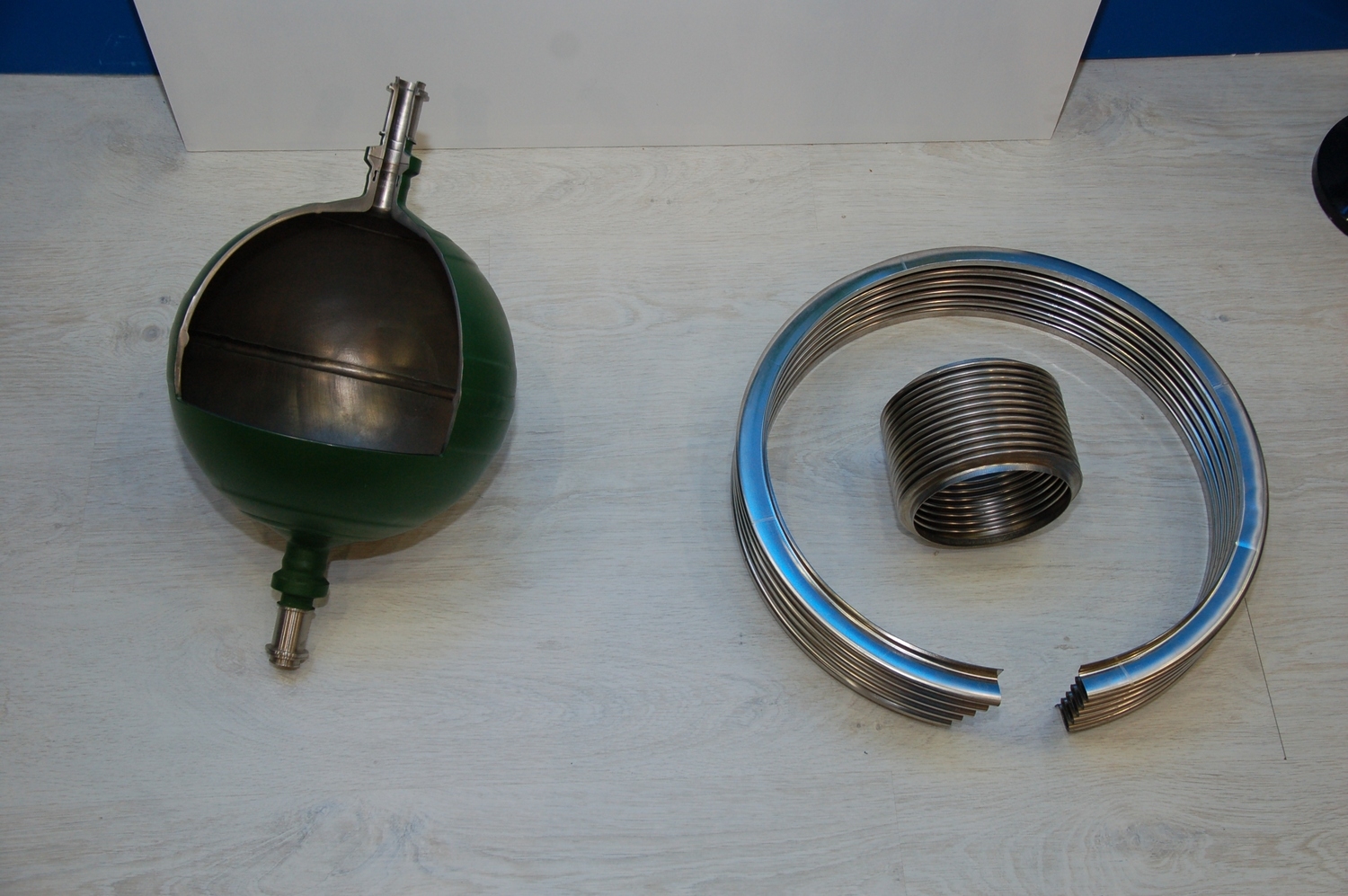 Это не шар-баллон. Это топливный бак с  мембраной-разделителем.  Большой сильфон тоже может быть от бака. Откуда это? Покрупнее нет?
