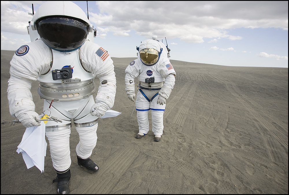 ЦитироватьНа картинке одинаково полужесткие скафандры, силовая основа из композитных материалов. Одеваются также как EMU.
