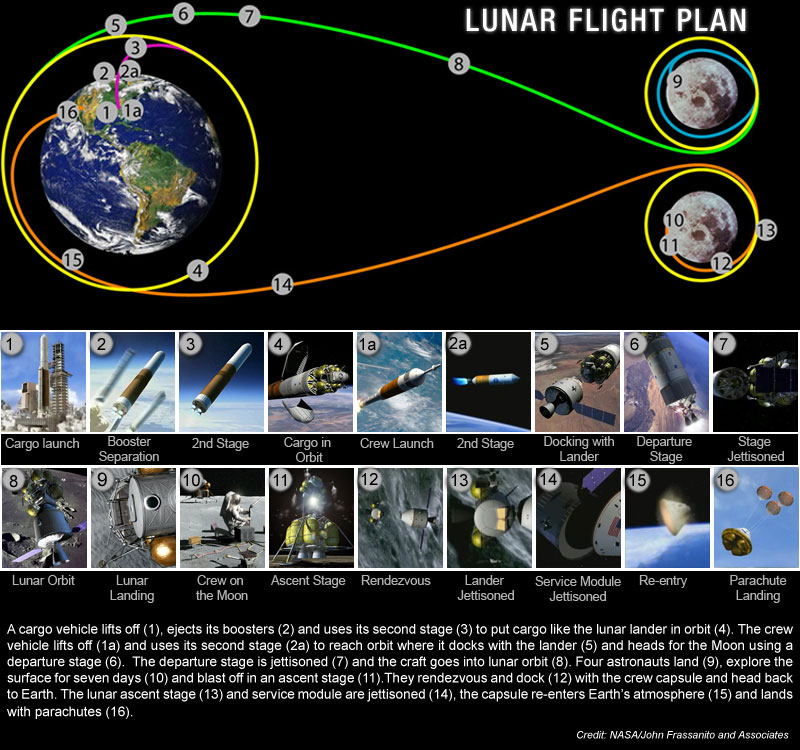 Сначала строиться замена пилотируемой части Шаттла, и ПОСЛЕ начинают только РАЗРАБАТЫВАТЬ всякие лунные прибабахи.