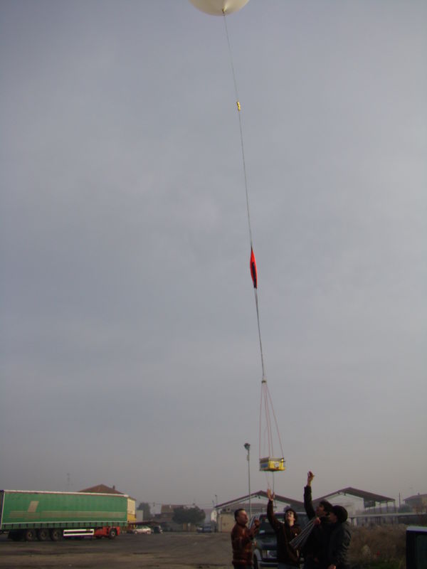 Подъем всей исследовательской аппаратуры на расчетную высоту осуществлялся за счет обычного небольшого воздушного шара, изготовленного из латекса. Для создания подъемной силы, а вес всей аппаратуры составил 1,5 кг, шар решено было наполнить гелием. Высота всей конструкции после подготовки составила девять с половиной метров, а скорость подъема исследовательского зонда – 270 метров в минуту.