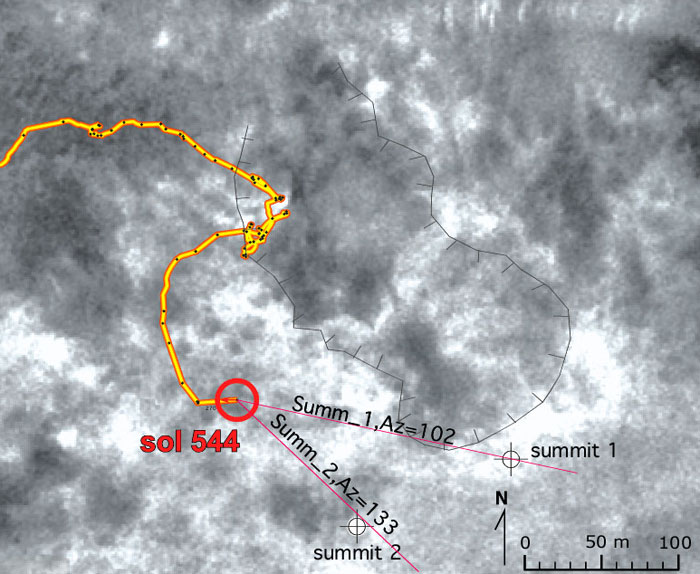 Spirit удачно поохотился на пылевых чертиков, в последовательности кадров видно прохождение сразу двух таких вихрей