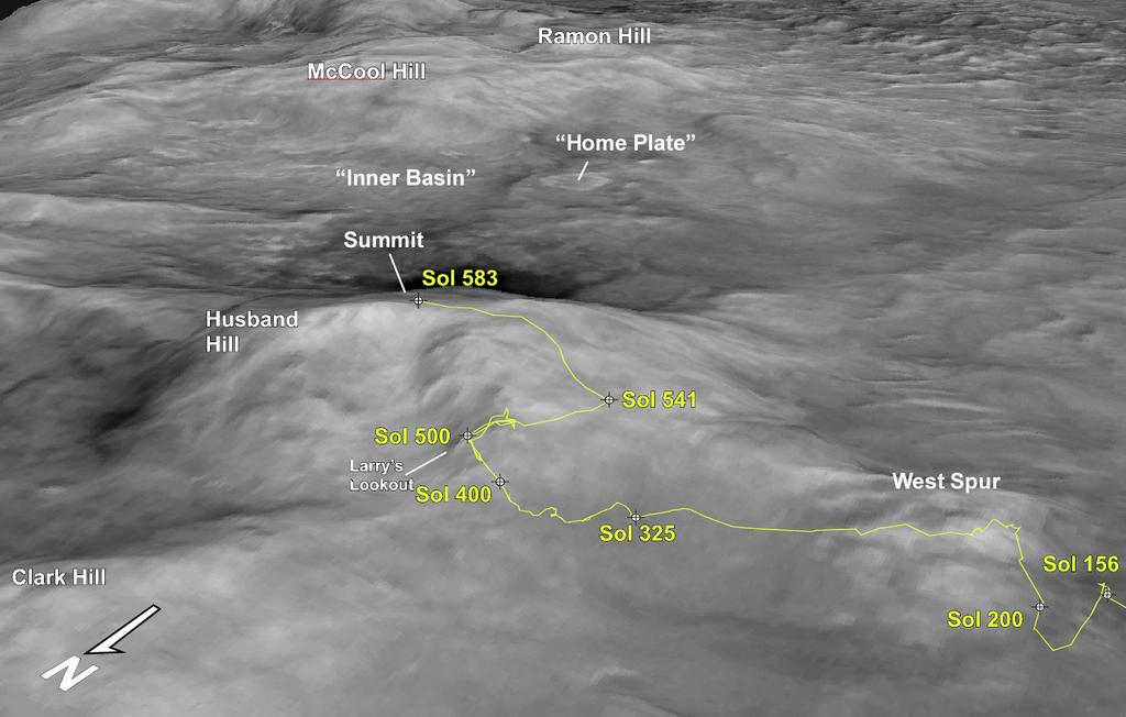 ЦитироватьSpirit was on sol 597 on Sept 6 and on the summit of Husband Hill.