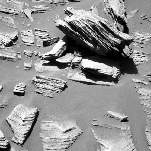As Spirit works at Home Plate during February, the science team is choosing informal names for rocks from the great players and managers of the Negro Leagues of baseball. This outcrop, "Barnhill," is informally named for David Barnhill, the ace of the New York Cubans' pitching staff during the early 1940s. He compiled an 18-3 record in 1941 and defeated Satchel Paige in the 1942 East-West all-star game. Other rocks in the area are informally named for Josh Gibson, "Bullet Joe" Rogan, and Cumberland Posey. Stay tuned this month, as the Baseball Hall of Fame elects more players from the Negro Leagues and Spirit continues to examine these spectacular rocks.