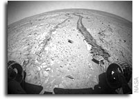 As the crow flies, that spot is 240.5 meters (130.8 feet) away. During the next few weeks, Spirit's journey to "Winter Haven 3" is expected to be no less difficult, requiring the rover to maneuver across a sandy, rocky valley along the western edge of "Home Plate."