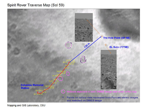 Еще картинка, показывающая, как Спирит объехал небольшой кратер.
