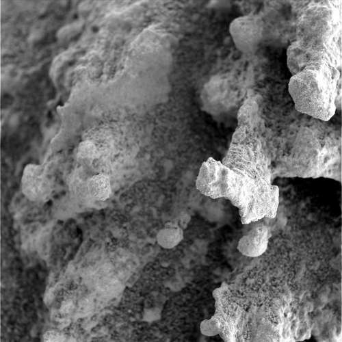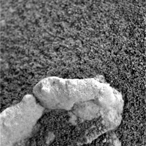 Останки дохлой крысы чуть выше центра снимка высоко торчат над поверхностью, а также чуть левее из под песка. Это немного интереснее крулых камушков под микроскопом.