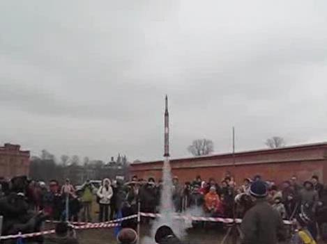 Был настоящий праздник. Всего было около полусотни пусков, разной степени зрелищности. Иногда не раскрывались парашюты, иногда их вырывало вышибным зарядом, и ракеты падали. У 2-3 парашюты были слишком велики, и их отнесло ветром в зоопарк или дальше. А одна ракета скрылась в небе и не вернулась :!: , о чём свидетельствую. Эридан отлетал и упал солидно. Сын был в восторге.