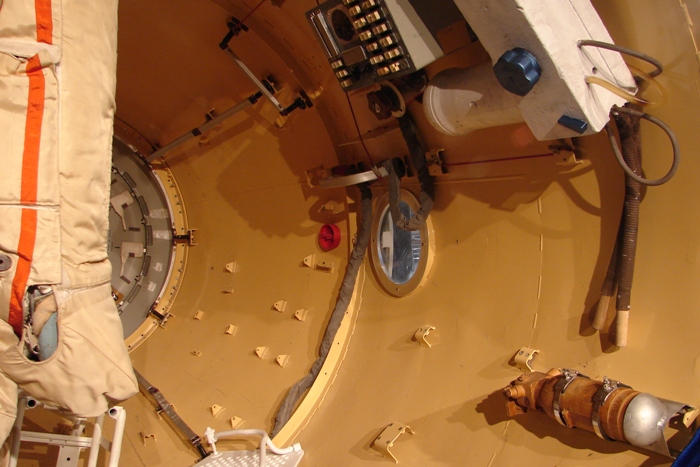 Жаль только, что особо трепетные мечты не сбылись: ни в «Поисковый вертолет», ни в тренажер стыковки с МКС не попала.(((((( Почему не работает «Поисковый вертолет», не объяснили. А ситуацию с тренажером стыковки я пыталась выяснить у работников музея, но до конца не поняла.  Работники музея пояснили что-то типа того, что сначала народ делится на экипажи и пытается стыковаться за столами перед экраном, а потом победителю этих попыток достается право попробовать постыковаться в настоящем тренажере («не всякая птица долетит до середины Днепра», то есть, до настоящего тренажера). Об этом надо вроде бы заранее договариваться, а вот откуда берутся эти экипажи, я не поняла – сразу скомплектованной группой что ли приходить надо? Или это вообще не для всех желающих? Будем надеяться, что представитель музея появится на этом форуме и прояснит порядок посещения этих экспонатов. Может, тогда сгруппируемся и устроим «Надо чаще встречаться» на стыковочном тренажере?)))))))