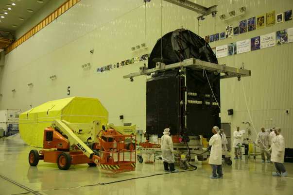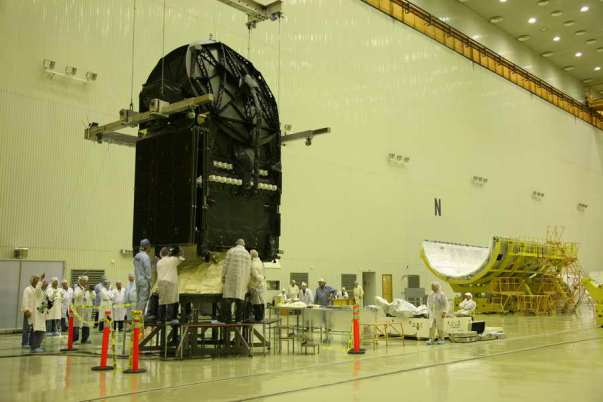 Сейчас в монтажно- испытательном корпусе (92-А50) специалисты из Центра имени М.В.Хруничева, Boeing (разработчик и изготовитель космического аппарата) и  RUAG  совместно проводят  сборку  КГЧ.