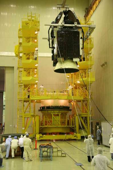 Сегодня расчетами предприятий Роскосмоса произведена стыковка сборки (космический аппарат-переходная система) с разгонным блоком «Бриз-М».