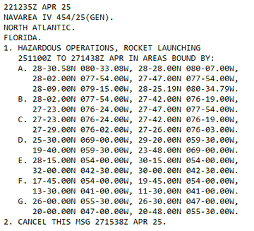 Launch window: 2025-04-27 23:42:10 UTC to 2025-04-27 23:42:29 UTC.