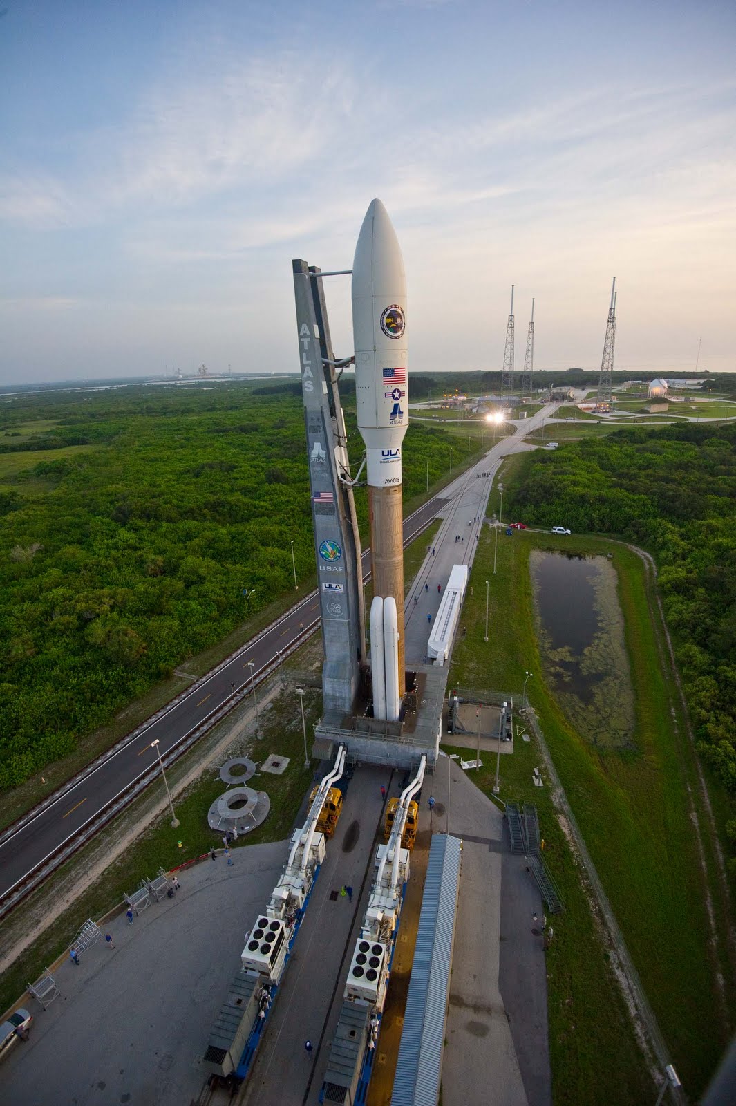 T-minus 3 minutes. The Atlas first stage liquid oxygen replenishment is being secured so the tank can be pressurized for launch.