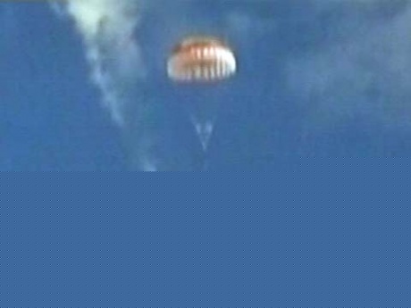 По ссылке есть видео. Наскольео я понял, пилот зацепился за самолет, и приземлился вместе с ним. Парашют не порвался, и, более того, "выдержал двоих"...