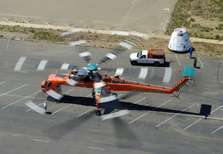 An Erickson S-64 Air-Crane nicknamed "Elvis" released Dragon from 4.26 km (14,000 feet) altitude off the coast of Morro Bay California, north of Vandenberg Air Force Base.