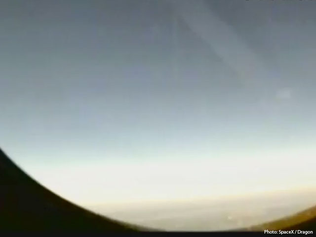 View from the side window of the Dragon spacecraft as it climbs into orbit.