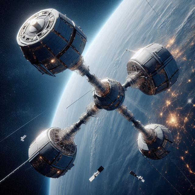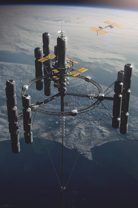 2 Это вообще известное изображение "верхушки космического лифта".  (понятное дело что в  космическом лифте ничего вращать не нужно к моей теме эта картинка тоже подошла  )