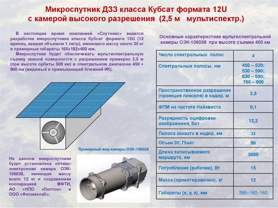 НПО "Лептон" довольно давно занимается (из того, что известно публично) разработкой камер, которые применяются на малых спутниках ДЗЗ. Например, такая стоит на ИнноСате, который запустили в июле. У "Спутникса" тоже стоят их камеры (кроме перспективного "Киноспутника").
