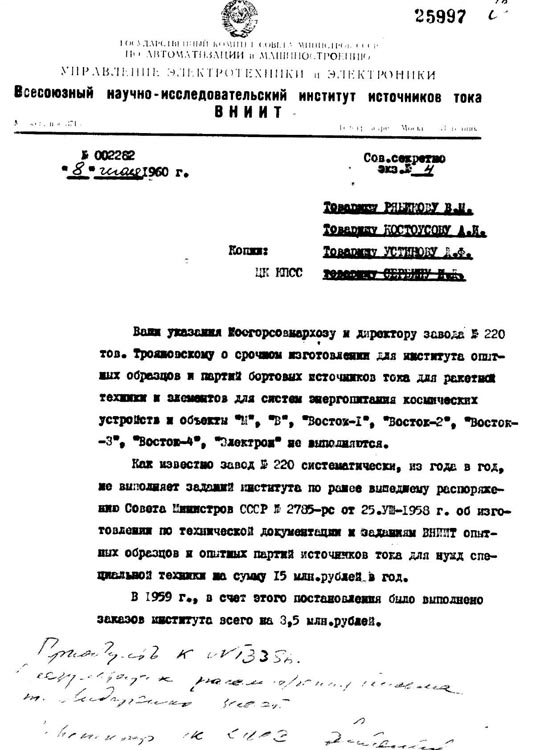Посмотрим пару документов, предшествующих выходу «большого космического постановления» от 23 июня 1960 г.