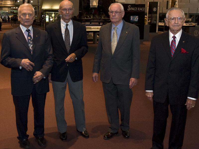 Баз Олдрин, Майкл Коллинз, Нил Армстронг и Крис Крафт в Национальном Музее Авиации и Космонавтики, Вашингтон 19 июля 2009 года.
